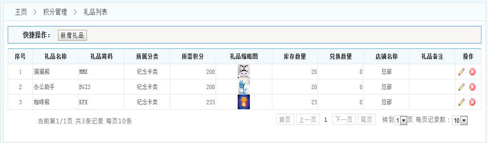 詳細操作:可以對該條的禮品經(jīng)行修改和刪除!