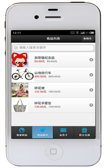 商品列表手機端: