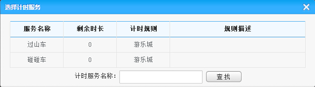 點擊選擇服務按鈕,選擇會員充時的計時服務,然后輸入充時的時間,系統(tǒng)將自動通過選擇的服務的規(guī)則計算出消費金額、可得積分等數(shù)據(jù)并自動填充